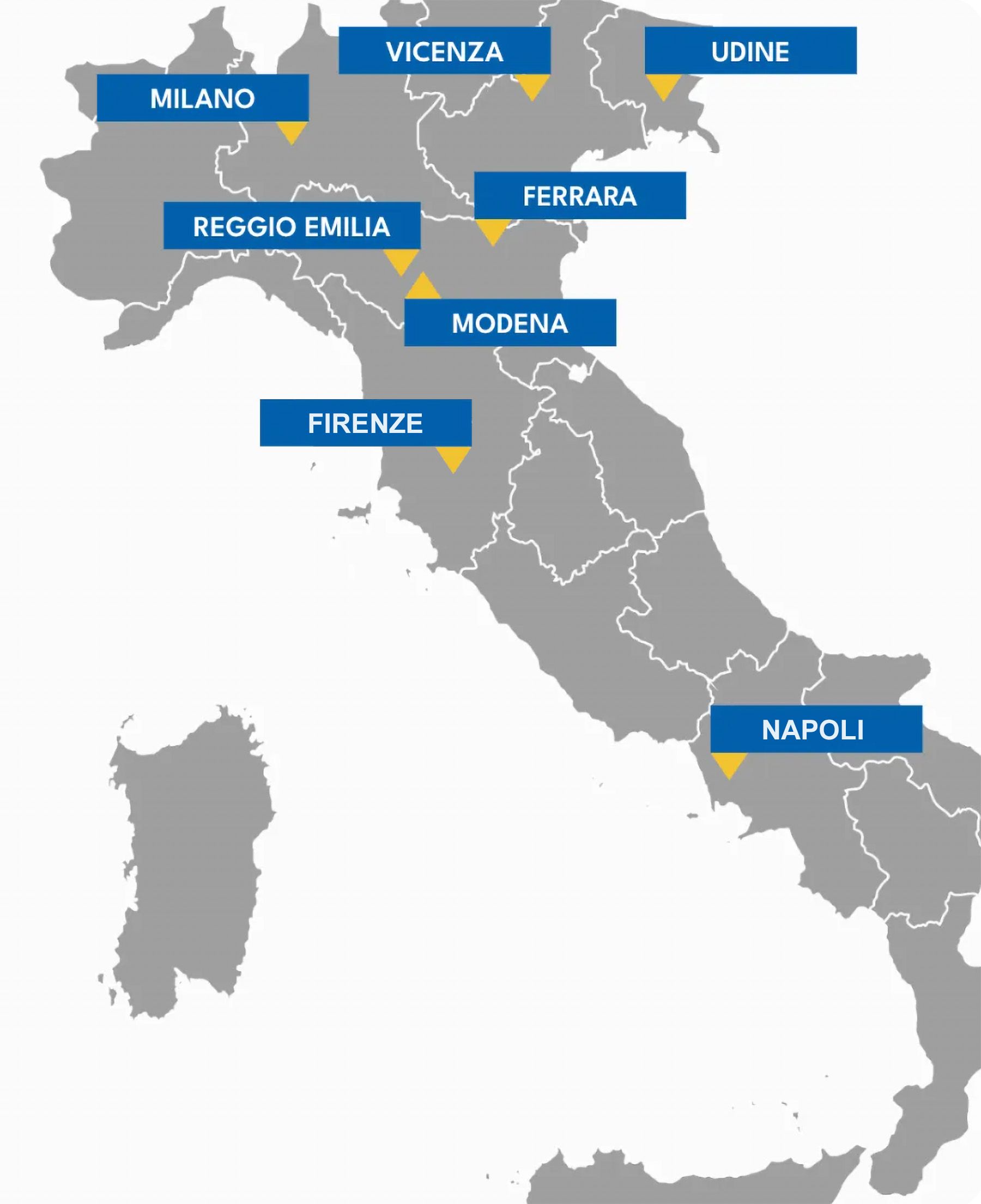 affidabilità e supporto tecnico in ogni fase della fornitura. Le nostre sedi, distribuite strategicamente sul territorio nazionale, garantiscono una