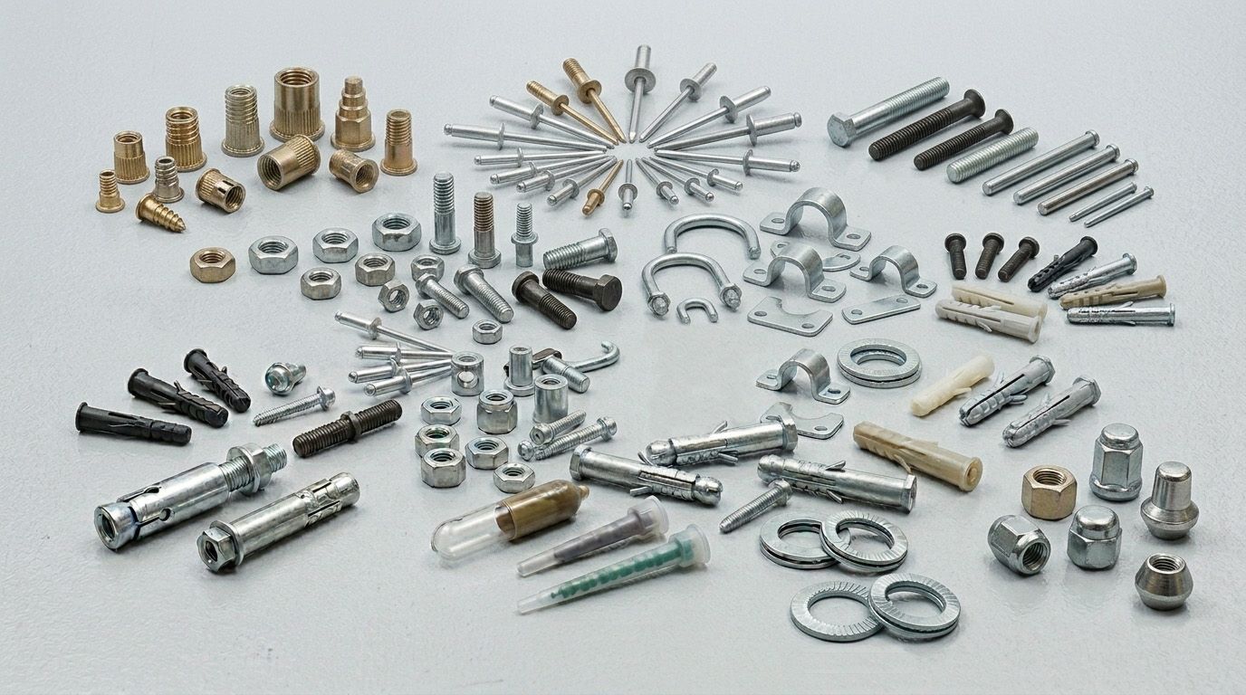 Inserti - Rivetti - Perni a saldare - Autoaggancianti (dadi e perni) - Cavallotti - Tasselli - Ancoranti - Fissaggi e Ancoranti chimici - Nord lock - Dadi ruota