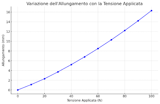 Grafico 1: Variazione dell'Allungamento con la Tensione Applicata